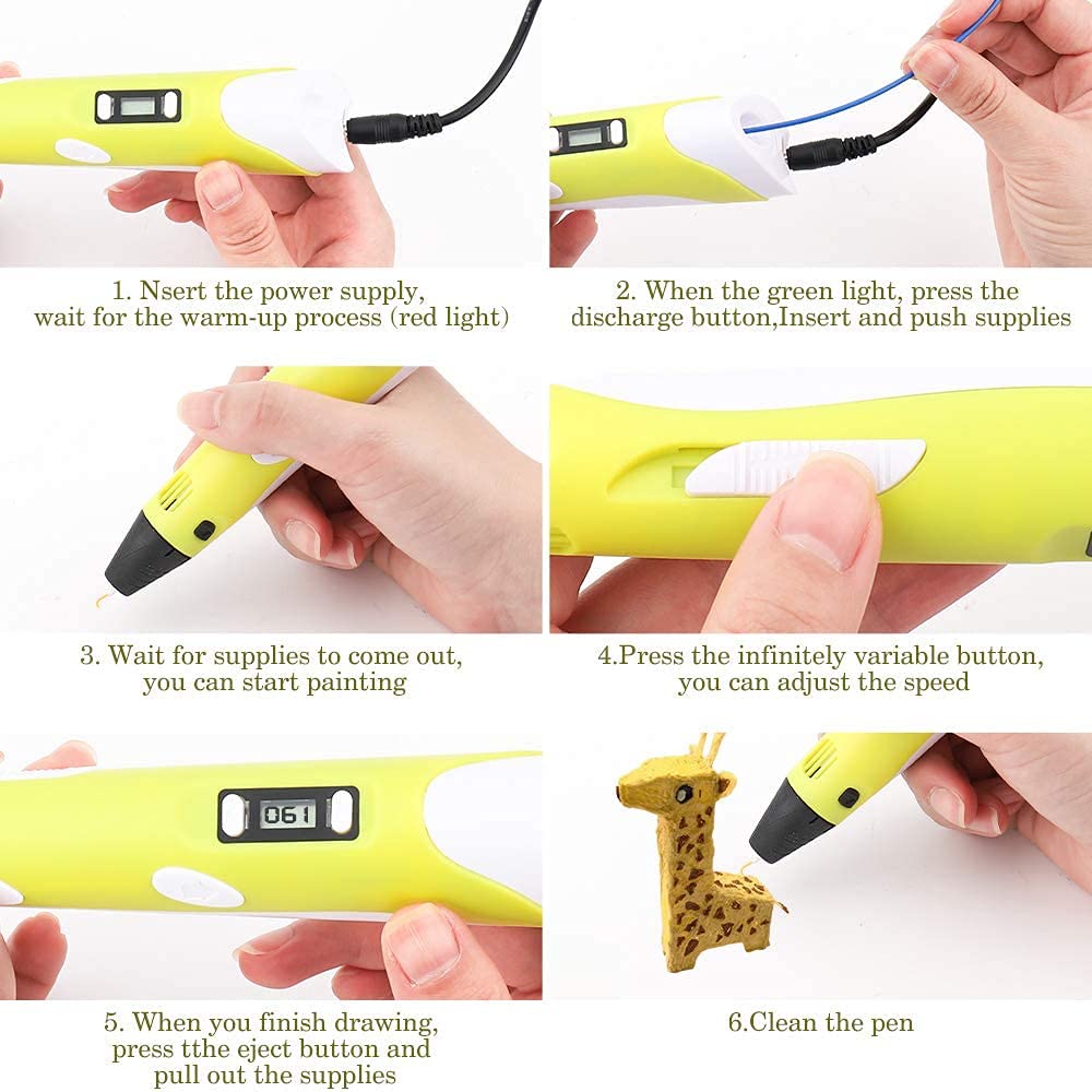 - Safe and Easy to Use for Kids: Simply Plug in the 3D Pen, Set the Desired Temperature, and when the LED on the 3D Pen Turns Green, you can start creating your First 3D Model.