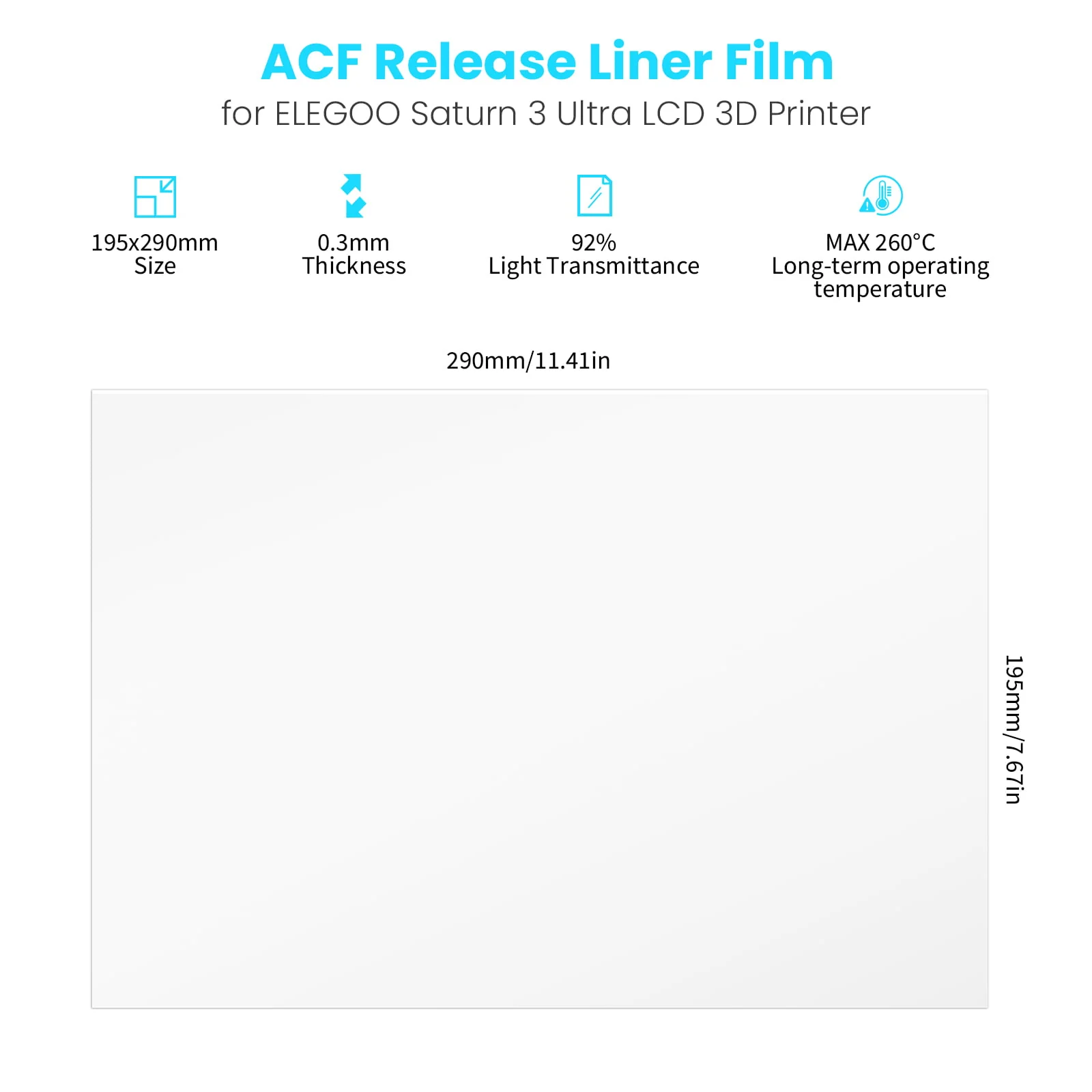 The Elegoo Saturn 3 Ultra ACF (Pack of 5) comprises release liner films made with advanced composite technology, ensuring seamless compatibility with the Elegoo Saturn 3 Ultra resin 3D printer. These Elegoo Saturn 3 Ultra ACF (Pack of 5) are engineered to prevent adhesion to the LCD screen, thus maintaining the integrity of your prints. With a thickness of 0.3mm, these Elegoo Saturn 3 Ultra ACF (Pack of 5) are durable and reliable, capable of withstanding the rigors of daily 3D printing tasks.